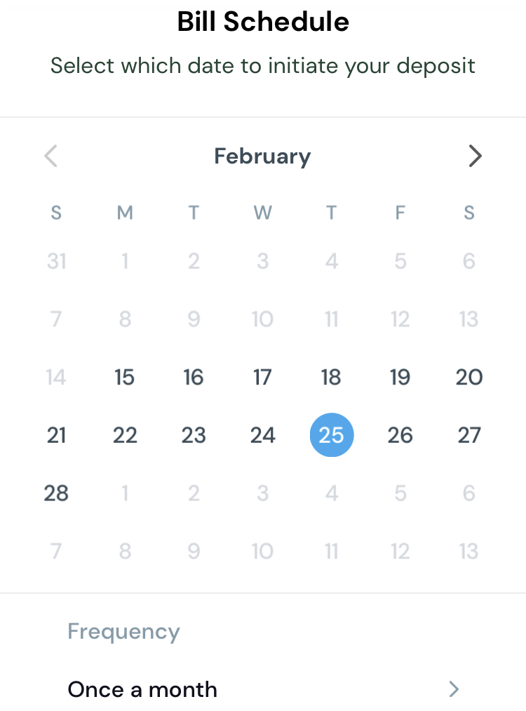 Lastly, select the payment schedule for when the bill is due. Keep in mind that Bill Qubes need to be scheduled for a future date. If you create a Bill Qube and try to make a payment on the same day, it may not work.