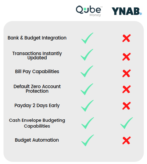 If you’d like to maximize your chances of spending wisely, and want to do it easily, Qube Money is the one for you! Qube’s combination of banking and budgeting facilitates way less overspending (just like cash envelopes), and user upkeep is minimal compared to YNAB (and many other budgeting apps).